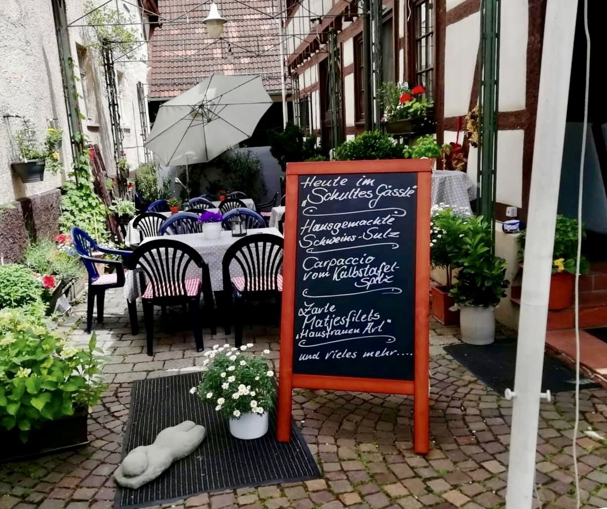 In unserem Schultesgässle verwöhnen wir Sie an warmen Tagen mit unserem Angebot an Getränke und Speisen.